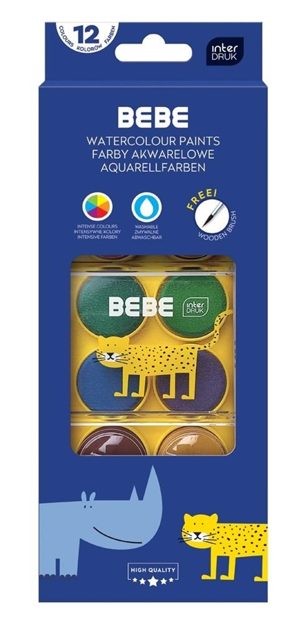 Farby akwarelowe BeBe Interdruk 12 kolorów.