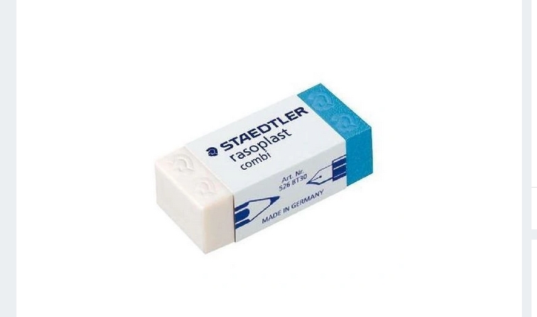 Gumki szkolne jakości Comfort. Do wycierania grafitu z papieru i matowej folii kreślarskiej. Niebieska część służy do wycierania atramentu z papieru. Ściera precyzyjnie i czysto - zostawia mało, łatwo usuwalnych odpadków. Nie niszczy powierzchni papieru. Owinięta w celofan z paskiem łatwego zrywania. Wygodna, ruchoma, kartonowa osłona. Nie zawiera ftalanów ani lateksu.